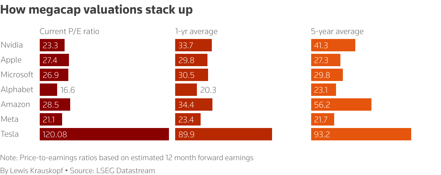 Instead, I look to the Mag7 stocks to observe what their ratios are, which are now only somewhat below a high of 30x.